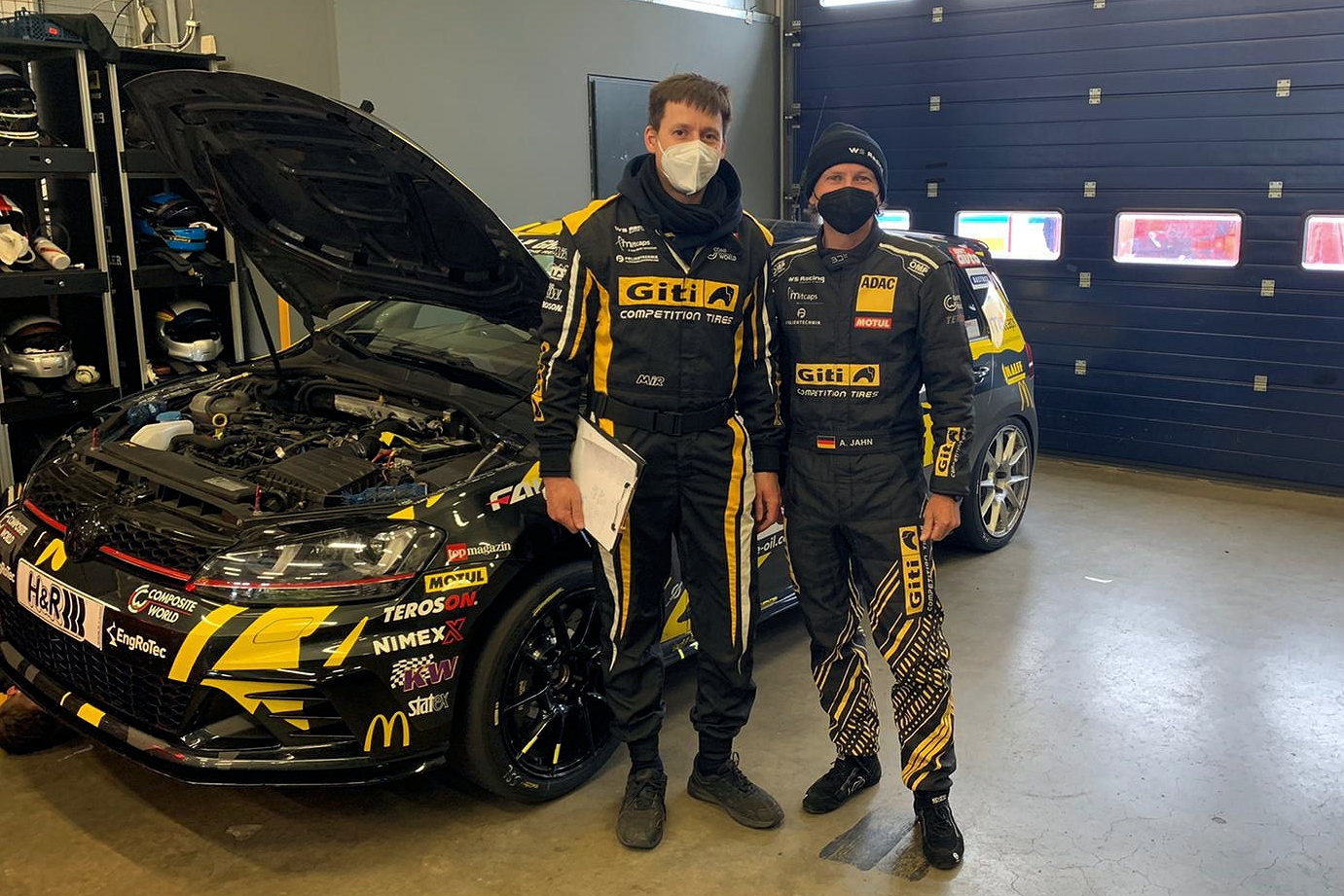 Einen Luftsprung gab es; aber für den Golf auf Axels 9.56 min Runde, die schnellste für dieses Fahrzeug. Diese war Basis für den hervorragenden 6 Platz (Kl. VT2) im Rennen und damit bestes Giti-Auto in dieser Klasse, nach dem die tolle 490-Mechaniker Crew ihr Bestes gegeben hatte.